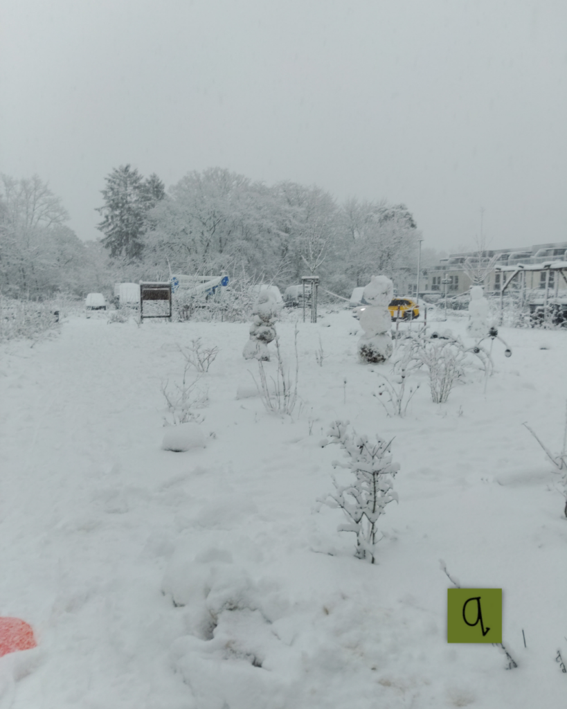 Passend zum Wochenende hat der Winter im Januar auch bei uns in querbeet Einzug gehalten – und zwar richtig. Es schneite und schneite, und unsere querbeet-Kids konnten den Winterspaß quasi rund um die Uhr genießen. Im Gemeinschaftsgarten entstanden gleich mehrere große Schneemenschen, ein Iglu und unzählige kreative Schneelandschaften. Bei der Menge an Schnee fiel kaum auf, wenn irgendwo etwas fehlte – es war einfach genug für alles da.